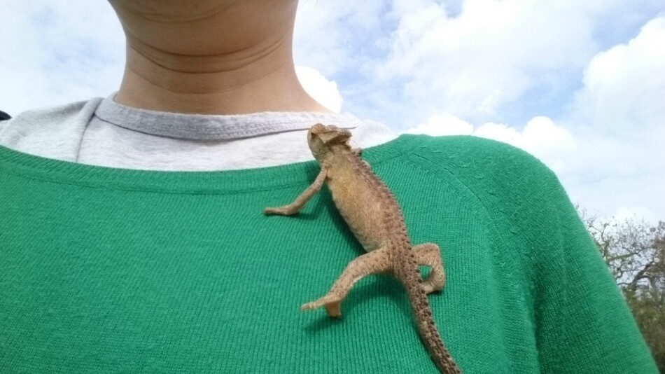 南アフリカのカメレオンは人なつっこい。猛獣だけでなく可愛いい小動物もいる。